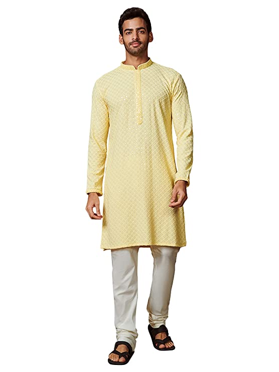 Home Mens Ethnic Manyavar Kurta Set for Men, Full Sleeves Mandarin Collar Ethnic Kurta Set for Engagement, Wedding, Party Embroidered