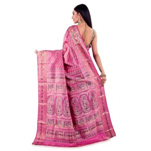 Home Womens Sarees Sareesofbengal Women’s Allover Meenakari Baluchari Swarnachari Silk Katan Silk Saree Pink