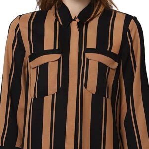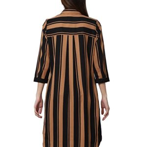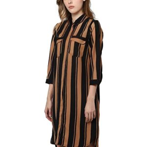 Vero Moda Women 100%Polyester Regular Fit 3/4 Sleeve Striped Black Shirt Dress