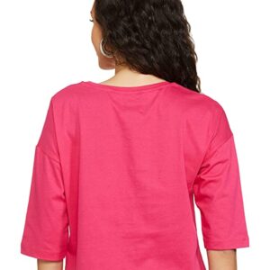 Vero Moda Women 100%Cotton Typography Fuschia Casual T-Shirt
