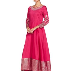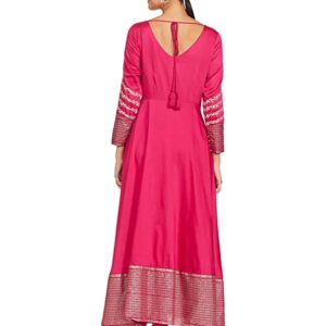 Indo-western light festive dress in panelled body detail and round neck with button closure. It also features metallic embroidery and gives a regular fit to you.
